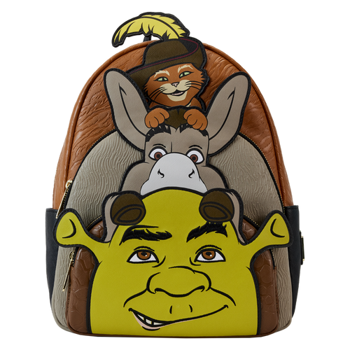 Dreamworks Mini Backpack Shrek, Donkey, and Puss in Boots Triple Pocket Loungefly