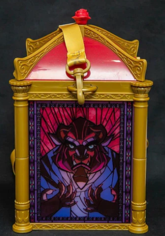 This incredible popcorn bucket from Tokyo Disney, features four sides with stained glass-motif designs of characters and important elements from the classic film, and even lights up!