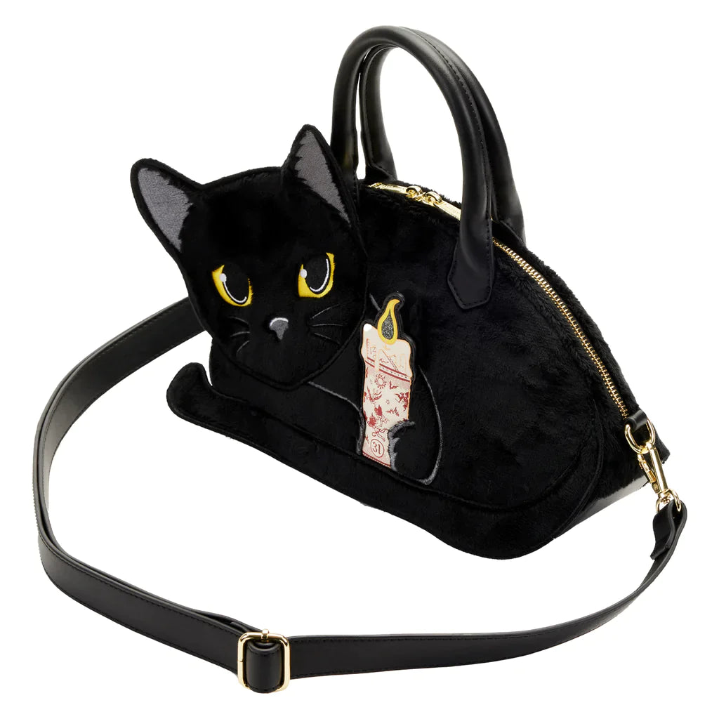 Celebrate the magic of All Hallows’ Eve with the Loungefly Hocus Pocus Binx Holding Candle Crossbody Bag. Taking the shape of this spellbound accessory, Thackery Binx has been transformed into a soft, plush black cat as he curls up next to the Black Flame Candle. A molded handle and detachable shoulder strap accompany the bag’s body, allowing you to change up your look at a moment’s notice. This bewitching accessory will keep your treasures safe as you run amuck on any adventure and makes an enchanting addition to any outfit.