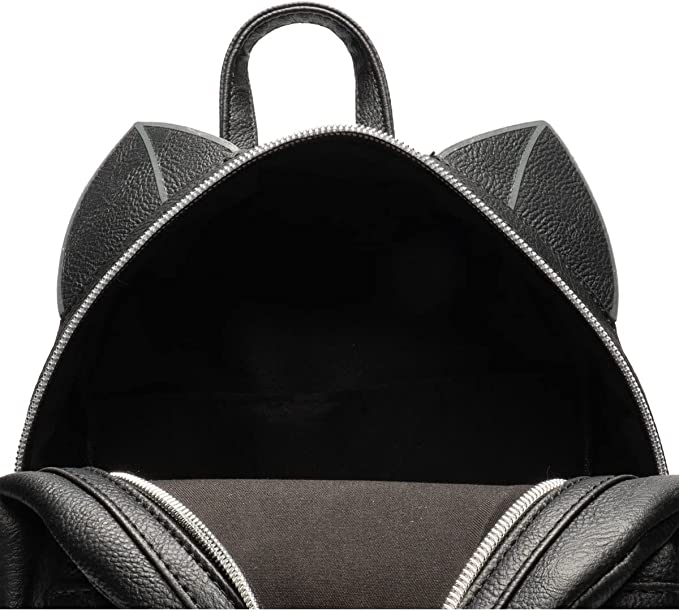 This Cat Has Your Back. Or At Least, She's On Your Back. This Incredible The Batman Catwoman Cosplay Mini-Backpack -Is Made Of Faux Leather And Includes Shiny Silver-Colored Hardware. It Features Catwoman's Eyes And Ears, And It Includes Top Zipper Closure, A Handy Front Zippered Pocket, Adjustable Straps, Matching Themed Lining, And Applique And Printed Details!