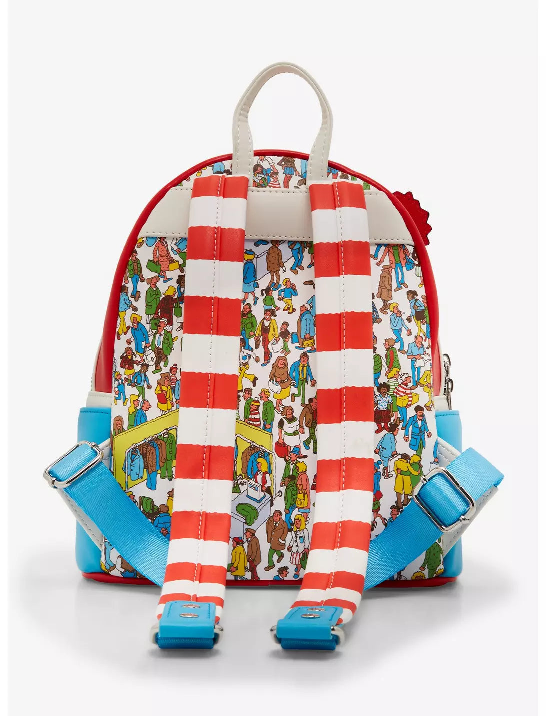 Keep an eye out for Waldo with this Where's Waldo-inspired mini backpack! Featuring a Waldo applique on the front with embroidered and plastic details, the front pocket includes a satchel applique to complete Waldo's iconic look. With side pockets, adjustable straps, and a rubber zipper pull of Waldo's dog, the interior and back panel of this bag feature a classic Where's Waldo scene.