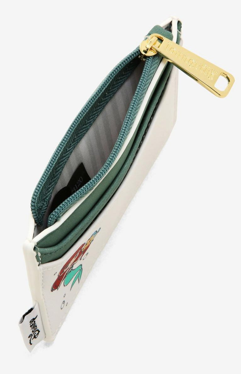 They say diamonds are a girl's best friend, but we like to think it's actually a teacup. Or a chameleon. Or a cricket. Disney Princesses show off their pals on this adorable Loungefly cardholder. Belle & Chip, Rapunzel & Pascal, Mulan & Cri-Kee, and Cinderella & Gus all appear on one side, while Ariel & Flounder appear on the other! Features 2 card slots to help keep you organized and a zipper compartment with a gold-tone zipper to keep your change in.