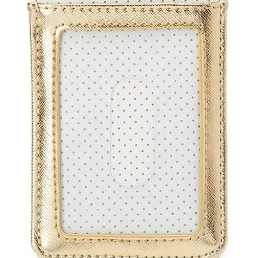It's a world of style when you keep your essential cards safely stowed in this chic white and gold holder. In addition to card slots, an ID window and a secure fold-over tab, it features the Disney it's a small world clock face, which is sure to inspire smiles.