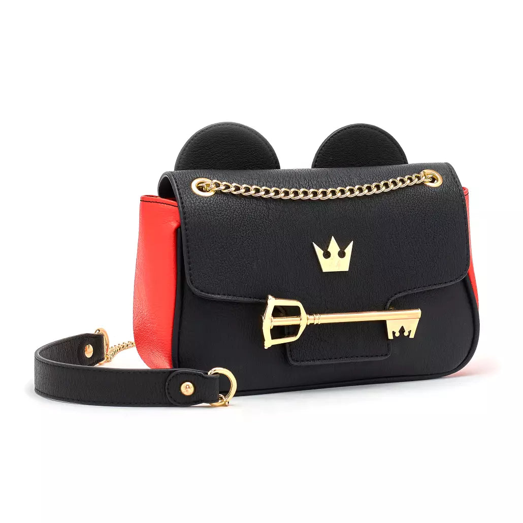 Make a playful addition to your favorite outfits with this Kingdom Hearts Crossbody Bag! Featuring 3D Mickey ears and a golden key detail, the chic bag pays homage to the classic video game. It additionally features a King Mickey AOP lining, and an internal zippered section.