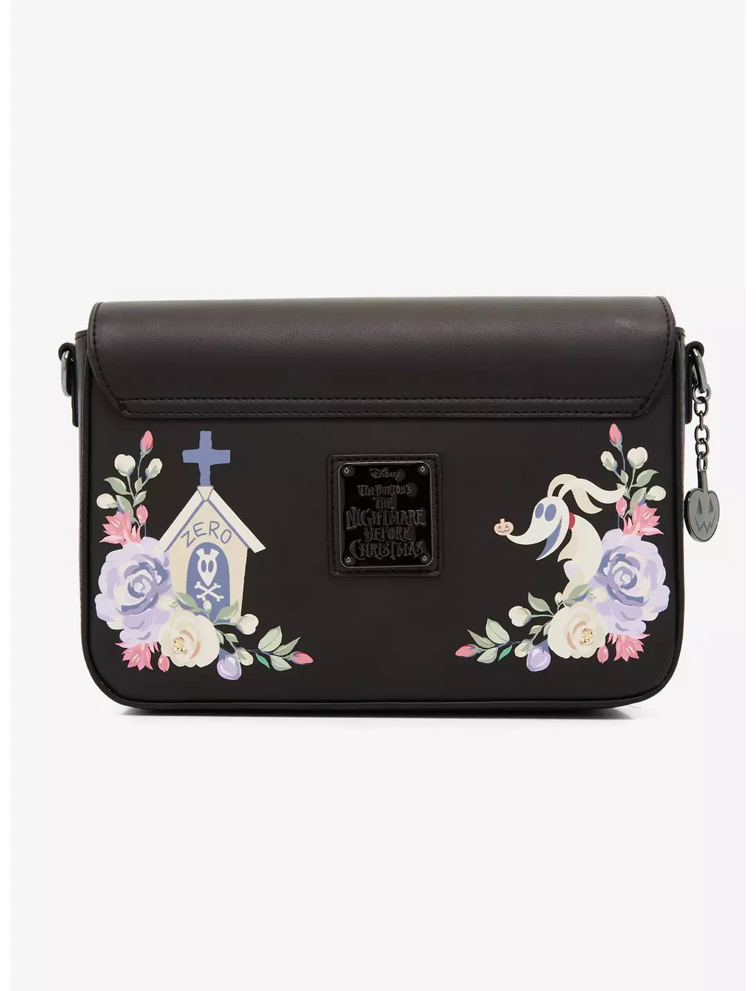 Zero is ready to tag along on all of your adventures with this Nightmare Before Christmas-inspired crossbody bag! Featuring an embroidered Zero and floral on the front, this bag also includes a metal doghouse twist lock closure. With a metal pumpkin keychain and removable crossbody strap, this purse is perfect for Halloween parties or strolls through the pumpkin patch.
