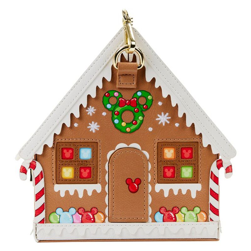 Home sweet home never looked more delectable for the holiday season. Cook up some sweet memories with this Stitch Shoppe Disney Minnie Mouse Figural Gingerbread House Crossbody Bag. This figural bag takes on the entire shape of a gingerbread house. Knock on the door, and a delightful gingerbread Minnie Mouse appears when you open it! The trim drips with white icing details, and candy-shaped goodies abound, including gum drops done up as Mickey Mouse ears. Even the stained-glass windows take on hard candy colors, and a green Mickey Mouse ears wreath hangs over the front door. Yummy details wrap around the back of the house, which is decorated with Mickey Mouse-shaped candy and a peppermint lollipop Mickey Mouse ears treat. It’s the perfect accessory for dashing to a Disney-themed holiday occasion—or for turning any outing into a sweet and magical adventure.