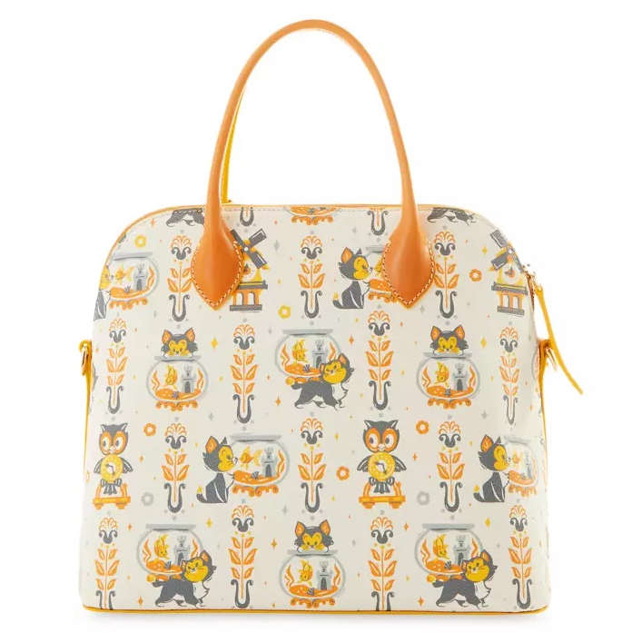 This delightful handbag by Dooney & Bourke is positively purrr-fect. It features an allover design inspired by Disney's animated classic Pinocchio with Figaro, Cleo, and Geppetto's clock and is finished with goldtone hardware and leather details