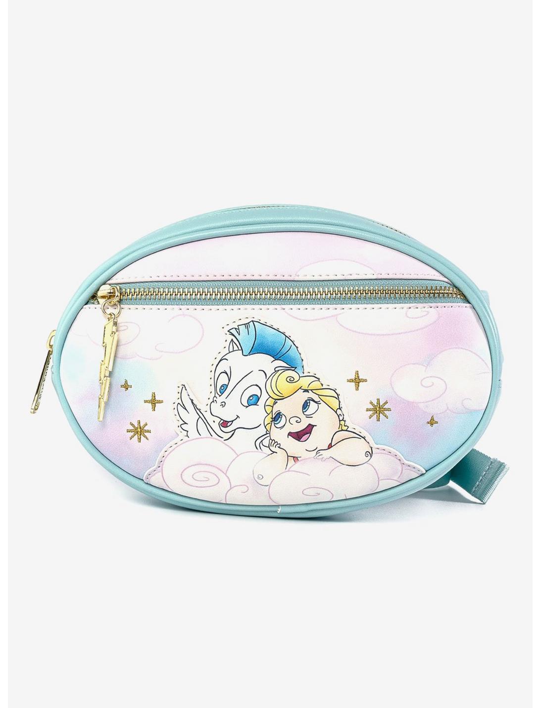Go hands free while you go the distance with this fanny pack from Hercules. The front features a printed and appliqued baby Hercules and baby Pegasus with embroidered details, with a lightning bolt pull on the zipper pocket. Featuring a top zipper closure and an adjustable waist strap with white buckle.