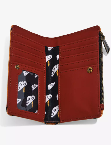 Unzip the bronze-toned zipper to unveil the clear ID sleeve and numerous card slots, along with the cloud and lighting interior lining. Boost your accessorizing style just like that!