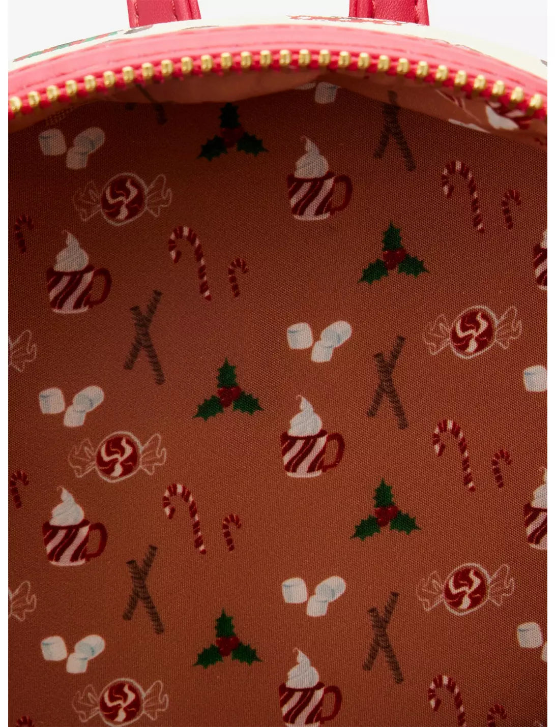 Ready to bring on some holiday ch-ear? Share in a holiday toast with Mickey Mouse and his pals! You’ll have everything you need to remain head and shoulders above the holiday crowd. This mini backpack features a festive print of cherished Disney characters as holiday mugs, and a matching pair of Mickey Mouse ears headband with Mickey Mouse and Minnie Mouse cocoa cups! Comes with main compartment, front zipper pocket and a top compartment with snap straps to hold your ears in place in case you want to get into the magical holiday spirit! Complete with side pockets and festive interior lining.
