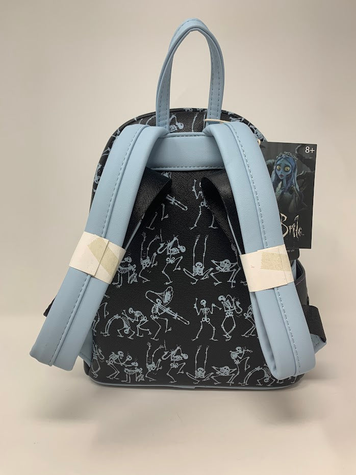 Get spooky with this Loungefly Corpse Bride Mini Backpack! Featuring Scraps the dog as the zipper pull, and glow in the dark (GITD) skeleton decals, this bag is a must have for any Corpse Bride collector.