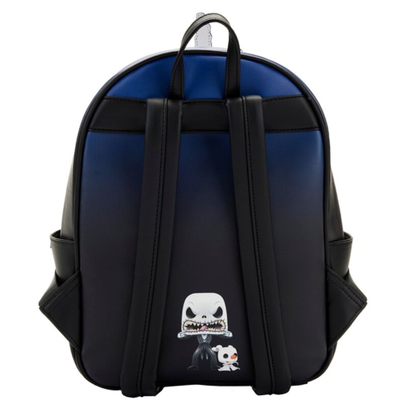 Prepare for a scare! Funko Pop! by Loungefly Jack Skellington Mini Backpack brings some frightful fun to every day. On the front, Jack Skellington and Zero the ghost dog from The Nightmare Before Christmas appear in Funko Pop! form outside the gates of Jack’s house. Opening the gate will grant you access to a hidden pocket perfect for storing your tricks and treats. Turn the bag around to find Pop! Jack Skellington and Zero striking a terrifying pose. Embrace your spooky side with a festive accessory that is sure to bring thrills and chills throughout the year.
