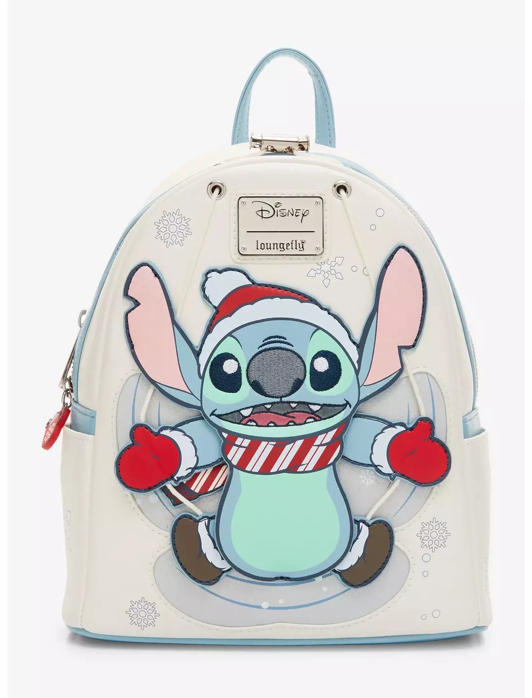 Stitch is leaving behind the tropical holidays for a snowy winter wonderland! This glittery Lilo & Stitch mini backpack features an appliqué of Stitch making a snow angel on the front, with arms and legs that swivel with the attached cord. Comes with side pockets, a hot cocoa silicone zipper charm and an interior drop pocket.