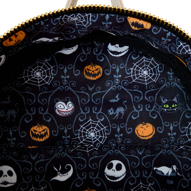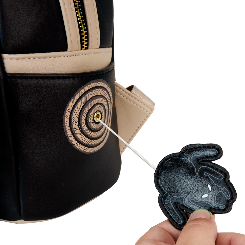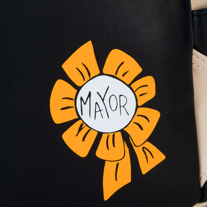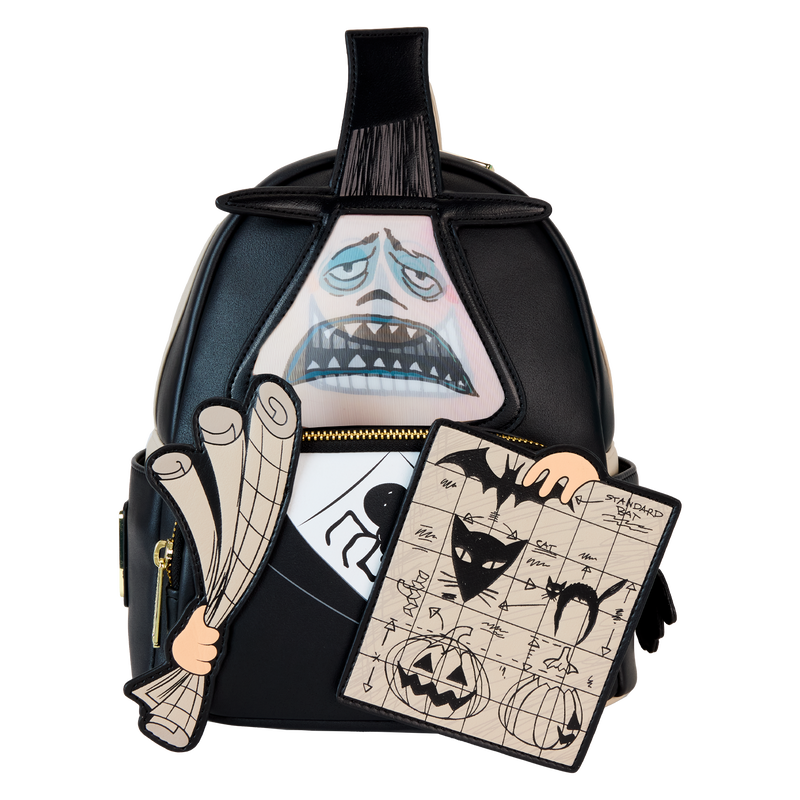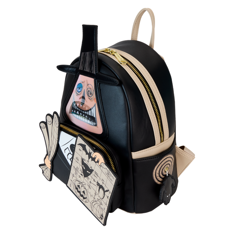 It’s official! If you’re visiting Halloween Town, you’ll definitely want to take along our Disney Tim Burton’s Mayor of Halloween Town Mini Backpack. He’s got the perfect plans! This memorable character comes to life in applique detail on the front pocket. His white shirt displays a spider print, and he holds applique map scrolls in one hand. In his other hand, he displays a plan for next year’s Halloween celebration. His cone-shaped face rises up over the top, and lenticular details reveal two different facial expressions. On one side pocket, an applique spider dangles from a coil-shaped spiral, similar to Disney’s Jack Skellington’s doorbell. And...what’s this? The spider on the string is retractable! On the back, you’ll find the Mayor’s special gold ribbon. Look hauntingly fashionable wherever you go with this terrifically terrifying accessory.