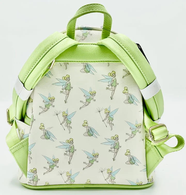 Pack your Neverland essentials as you head towards the second star to the right and straight on 'til morning with this Loungefly Tinkerbell Mini Backpack! Created as an exclusive to Modern Pinup in the USA and firstly featuring a white background with beautiful bright green trims, this charming bag showcases an all over print (AOP) of everyone's favorite fairy. As well as the stunning character artwork, the piece is finally complete with adjustable and padded shoulder straps, classic double zip fastenings and the signature enamel logo.