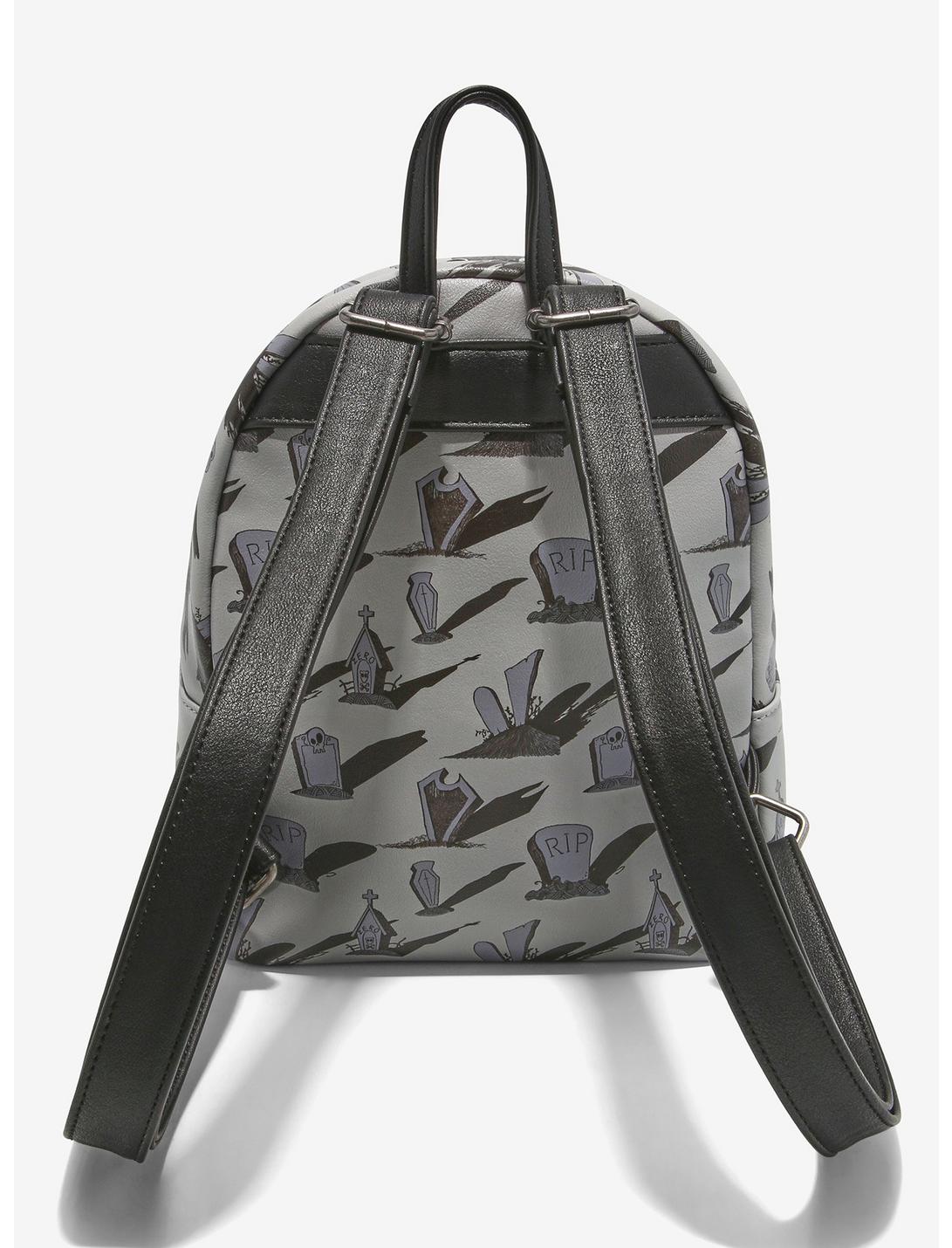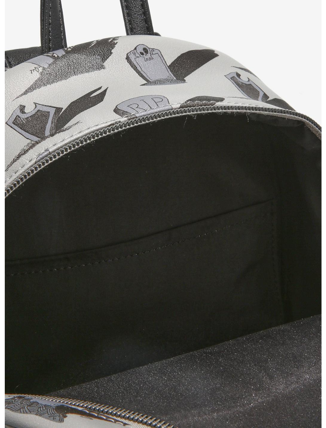 Carry around tons of treats for Zero in this The Nightmare Before Christmas mini backpack! Featuring an allover graveyard print and a sketch design on the front zipper pocket of Zero leaving his dog house, ready to spend a fright-filled day with Jack! Comes with adjustable straps, interior drop pocket, top carrying handle and silver-tone hardware.