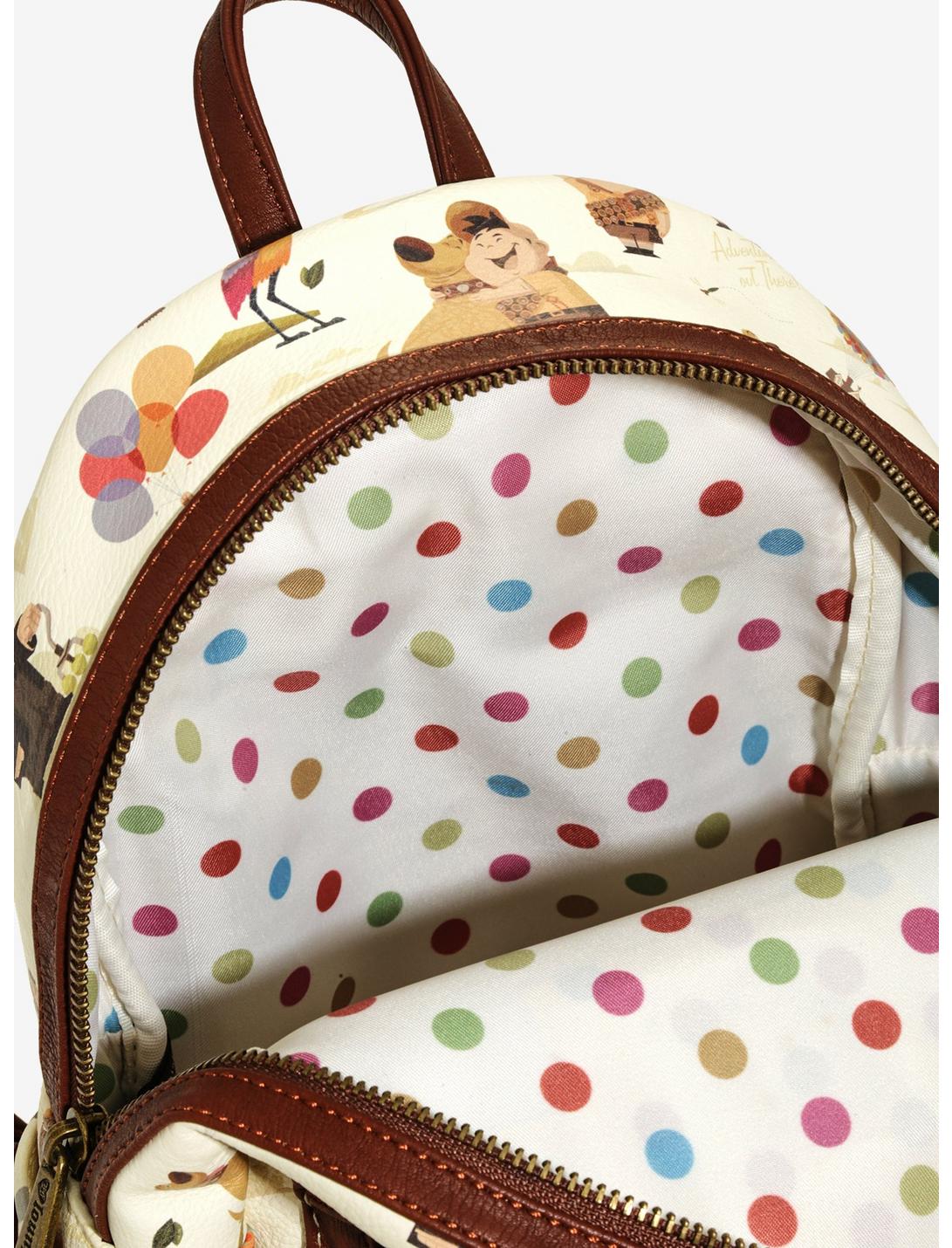 Adventure is out there! Carry the right backpack when you find yours! This cream and brown mini backpack from Loungefly x Disney Pixar features a vintage style Up allover print. You shouldn't run out of pockets with the main zipper compartment, small zipper closure pocket and two side pockets. Adjustable back straps.