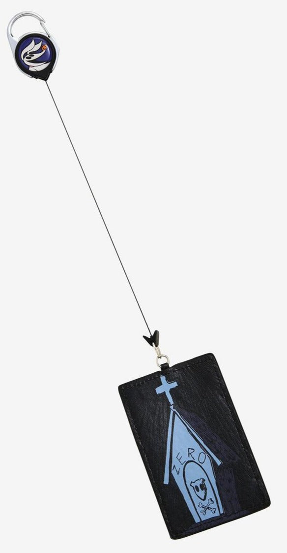 If Zero can keep a team of skeleton reindeer in line, we're sure he can keep your keys together! This retractable lanyard features Jack Skellington's ghost pet, his dog house, and a clear ID slot.