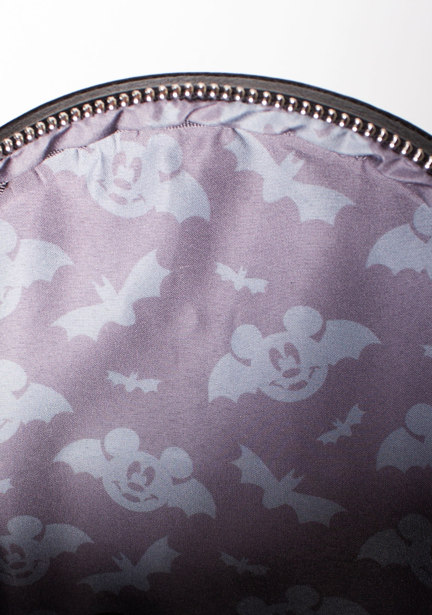 It’s the perfect Disney adventures and Halloween rave nights mash-up! This official Loungefly mini backpack features an exclusive all over print of glow in the dark Mickey bats for the Disney cosplayer frequenting Mickey’s not-so-scary Halloween party! With a versatile black color palette, front zip pocket, and side pockets for extra storage, this sleek glow-in-the-dark backpack is perfect with any festival outfit, rave outfit or horror night.