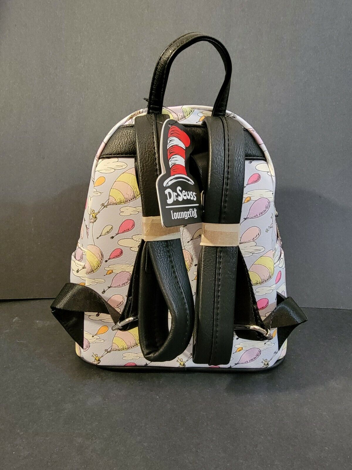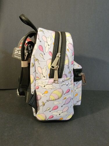 Oh the Places You’ll Go Mini Backpack pays homage to the legendary author, Dr. Seuss. Faux leather AOP Colorful Balloons Adjustable shoulder straps Side pockets Front zipper pouch Dr. Seuss X Loungefly metal Plaque 10.5”H x 9''W x 4.5''D