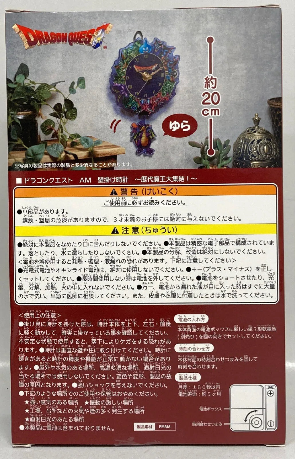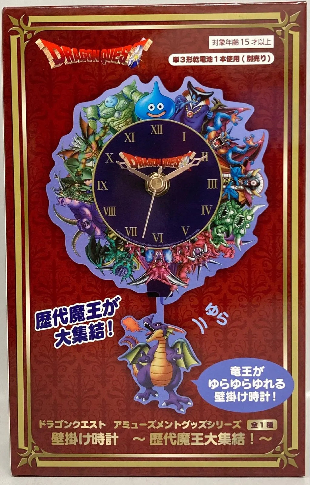 Wall clock featuring all the Demon Lords from the popular game "Dragon Quest"! This is an acrylic clock with a swinging dragon king!