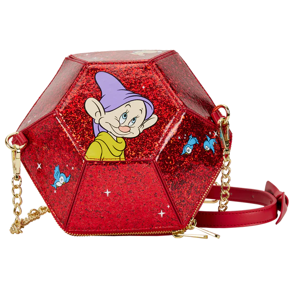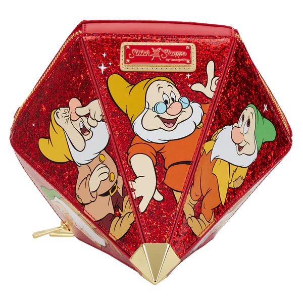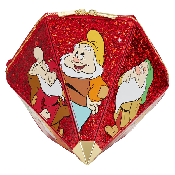 A hidden gem has just been revealed! Make this Disney Snow White Red Gem Crossbody Bag the crowning jewel of your Disney wardrobe collection. On this crossbody bag, several of the Seven Dwarfs and woodland creatures appear on various cuts of the 3D-diamond-shaped purse. Features include a detachable, adjustable gold-metal-chain strap and printed and applique details. The exterior features vegan leather (polyurethane).
