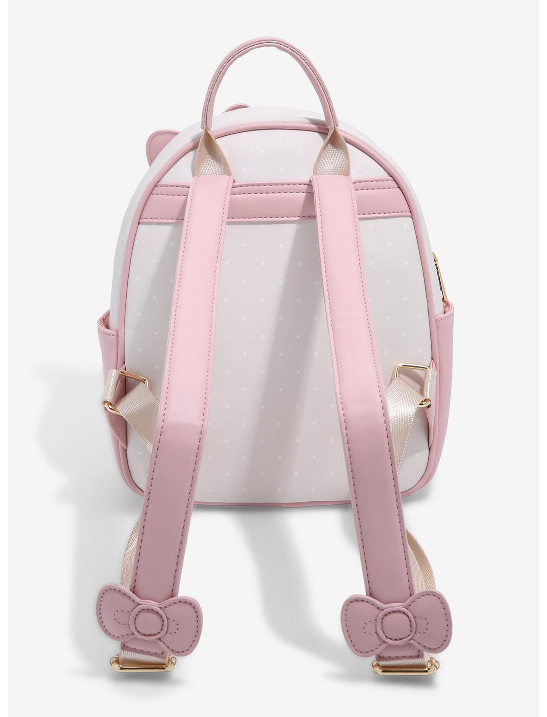 Your favorite characters from Fruits Basket are joining Hello Kitty and friends for one adorable look on this mini backpack! Featuring Yuki, Tohru, and Kyo from the beloved anime in super cute chibi makeovers on the front (complete with their Zodiac Animal ears!), My Melody, Hello Kitty, and Kurumi appear alongside them, with Badtz Maru joining Shigure on the side. Also features two side pockets, an enamel brand badge, gold-toned hardware, and Hello Kitty bow appliqués on the front canvas and adjustable shoulder straps.