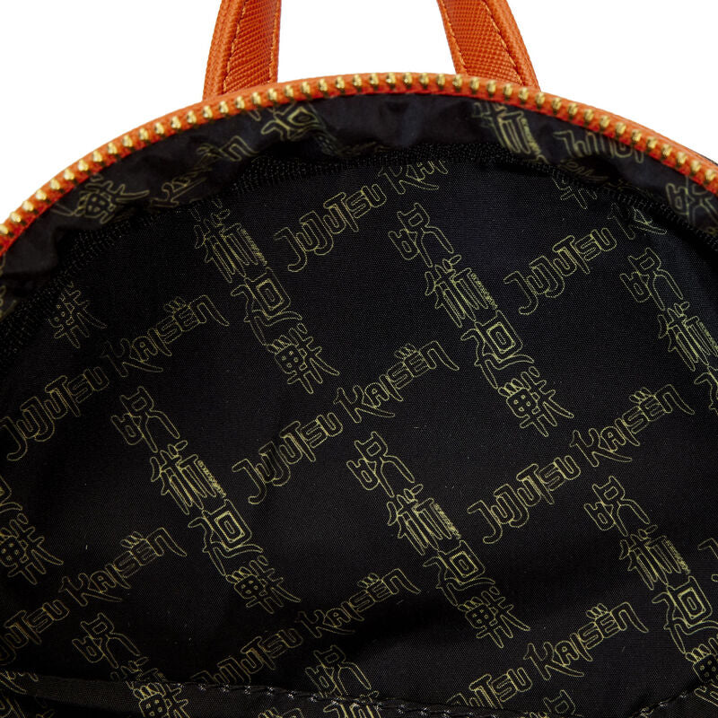 The Loungefly Yuji Itadori Cosplay Mini Backpack is made of vegan leather (polyurethane). Bag has adjustable shoulder straps and shiny silver hardware. Additional features include applique, debossed, and printed details. Take note of the coordinating inside lining.