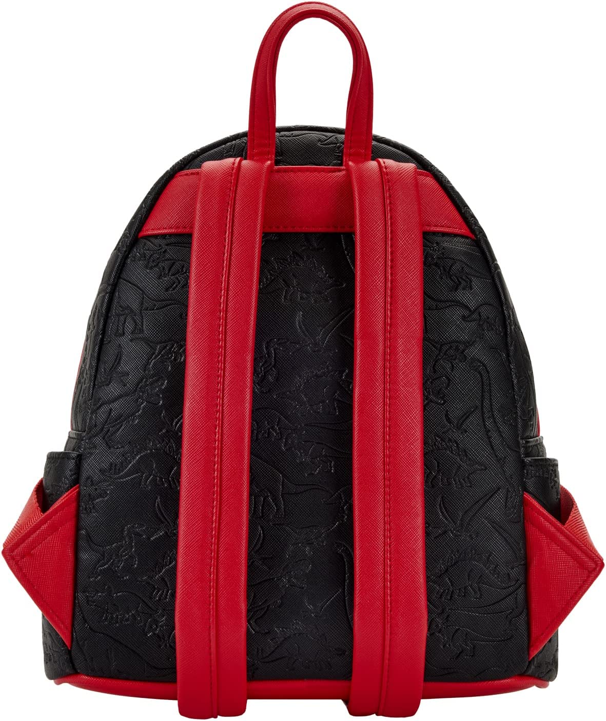 Introducing Jurassic Park Logo Mini Backpack from Loungefly. This faux leather mini backpack features an enameled zipper charm, applique, embroidered, debossed, and printed details, as well as adjustable straps.