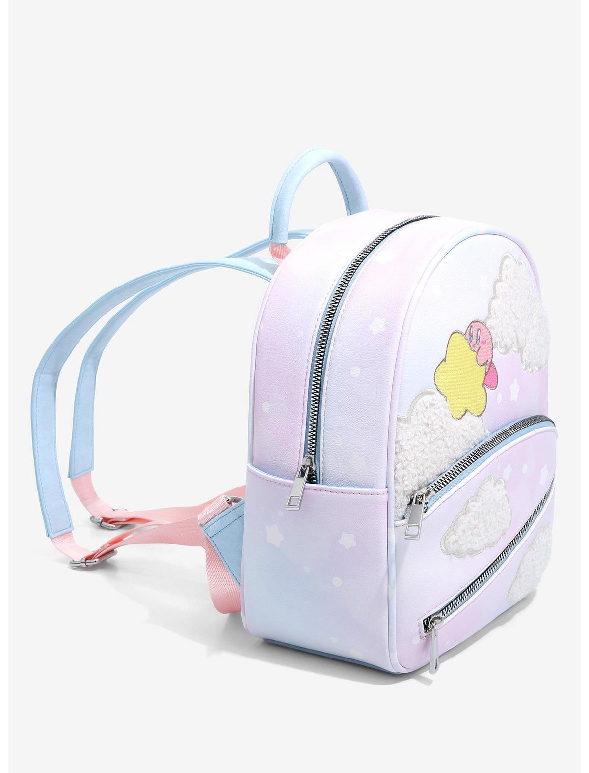 Kirby's catching an air ride on a Warp Star and is heading straight into your wardrobe! Featured as an embroidered patch on the front of this mini backpack, the adorable Nintendo mascot soars through the sky-printed background, decorated by chenille cloud patches to complete the look.