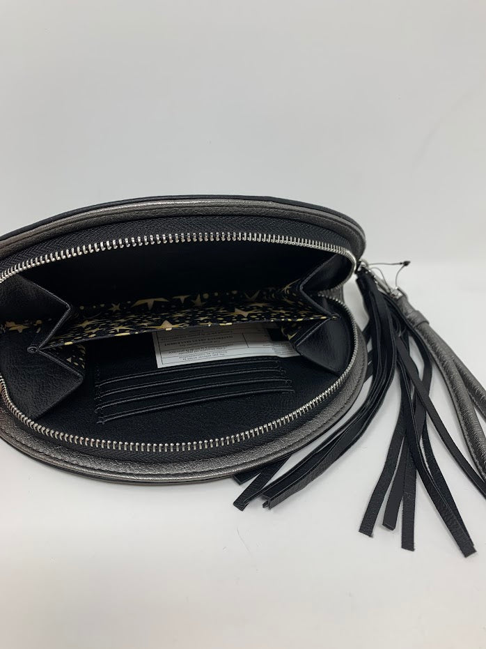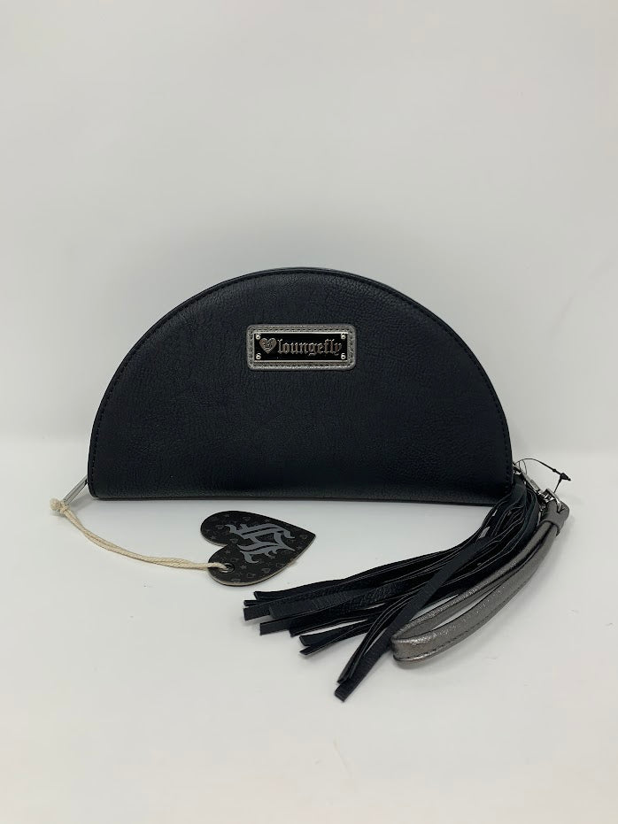 This is your time to shine and release your inner astrologer with this gorgeous Celestial design Loungefly wristlet. Featuring a crescent moon shape with embroidered and debossed detailing, it's the perfect accessory for someone who has their head in the stars! Measuring approximately 6” width by 4” height.