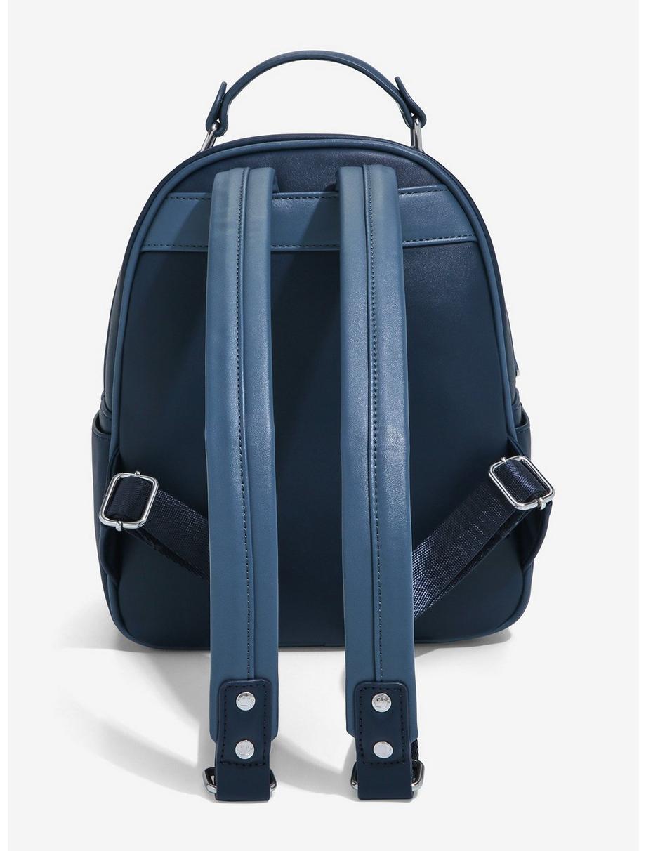 Take your accessory game to the moon with this mini backpack from Loungefly! Inspired by the beloved animated movie, WALL•E, WALL•E and EVE pose holding hands in front of a heart-shaped moon on this bag's front pocket for an adorable Disney•Pixar look. Also features an enamel brand badge, silver-toned hardware, an outer space-themed interior lining pattern, and enamel zipper pulls of EVE's plant logo indicator.