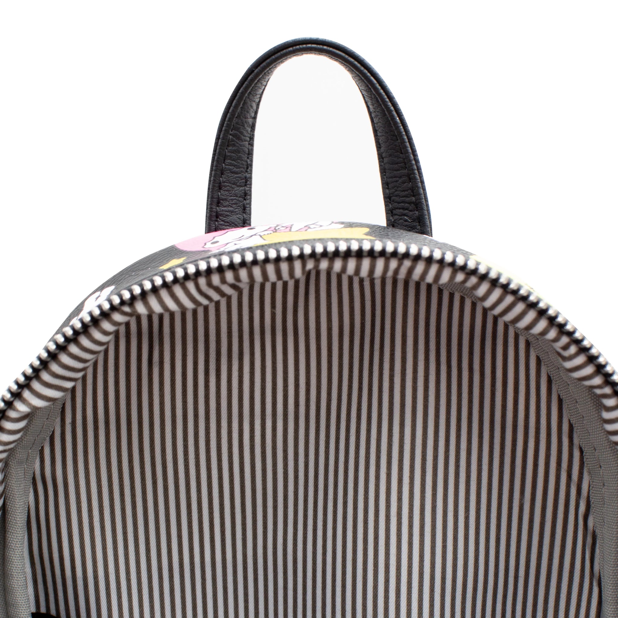 Hello Sanrio Character AOP Loungefly Mini Backpack features some of your favorite characters, such as Hello Kitty, My Melody, Little Twin Stars, Kuromi, Keroppi, Badtz-Maru, Tuxedo Sam, Hangyodon, Pochacco, Chococat, Pom Pom Purin, Gudetama, Dokidoki Burger, and Monkichi.