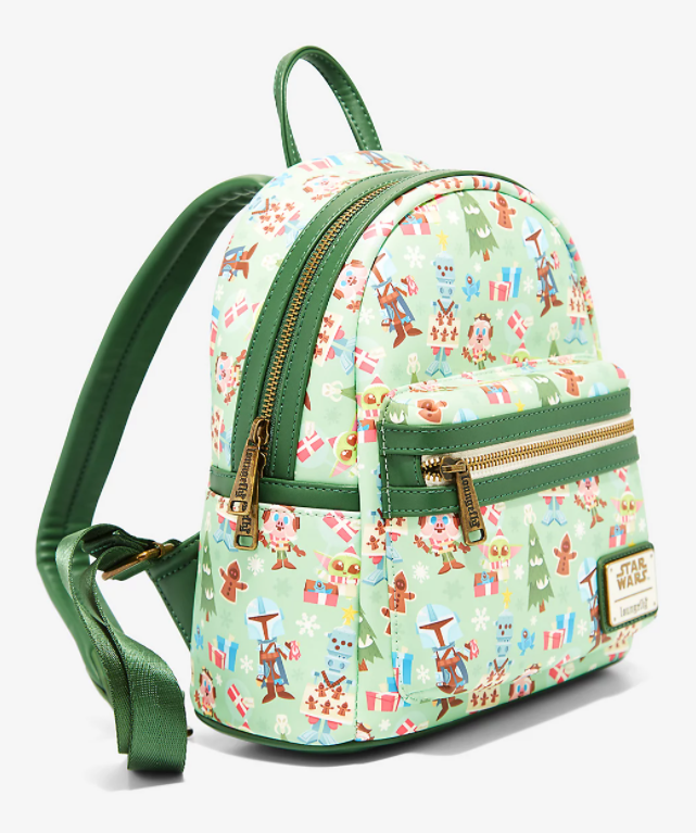 Ring in the season with Mando, the Child (AKA "Baby Yoda"), Kuill, and IG-11 when you add this Loungefly mini backpack and cardholder set to your holiday wardrobe!