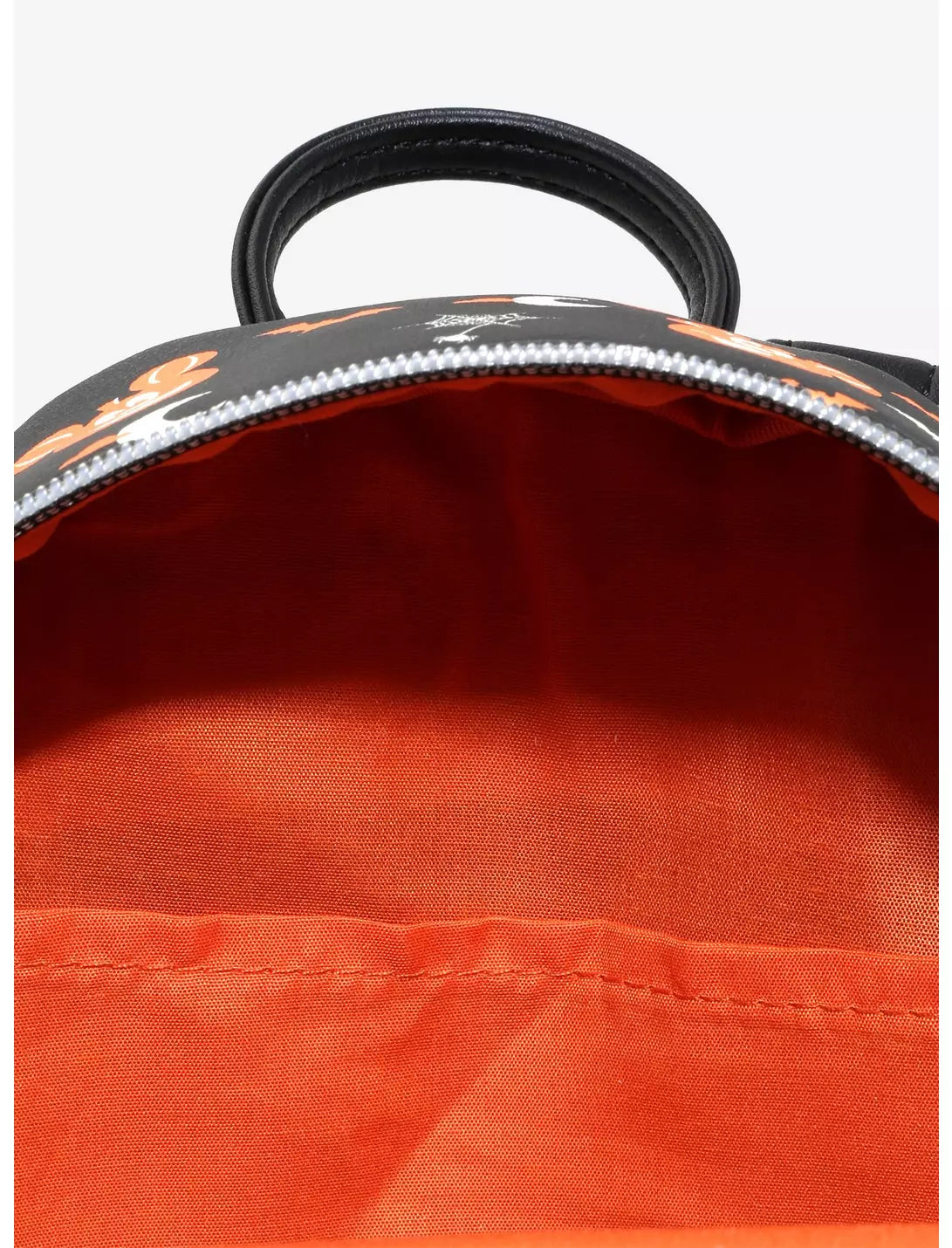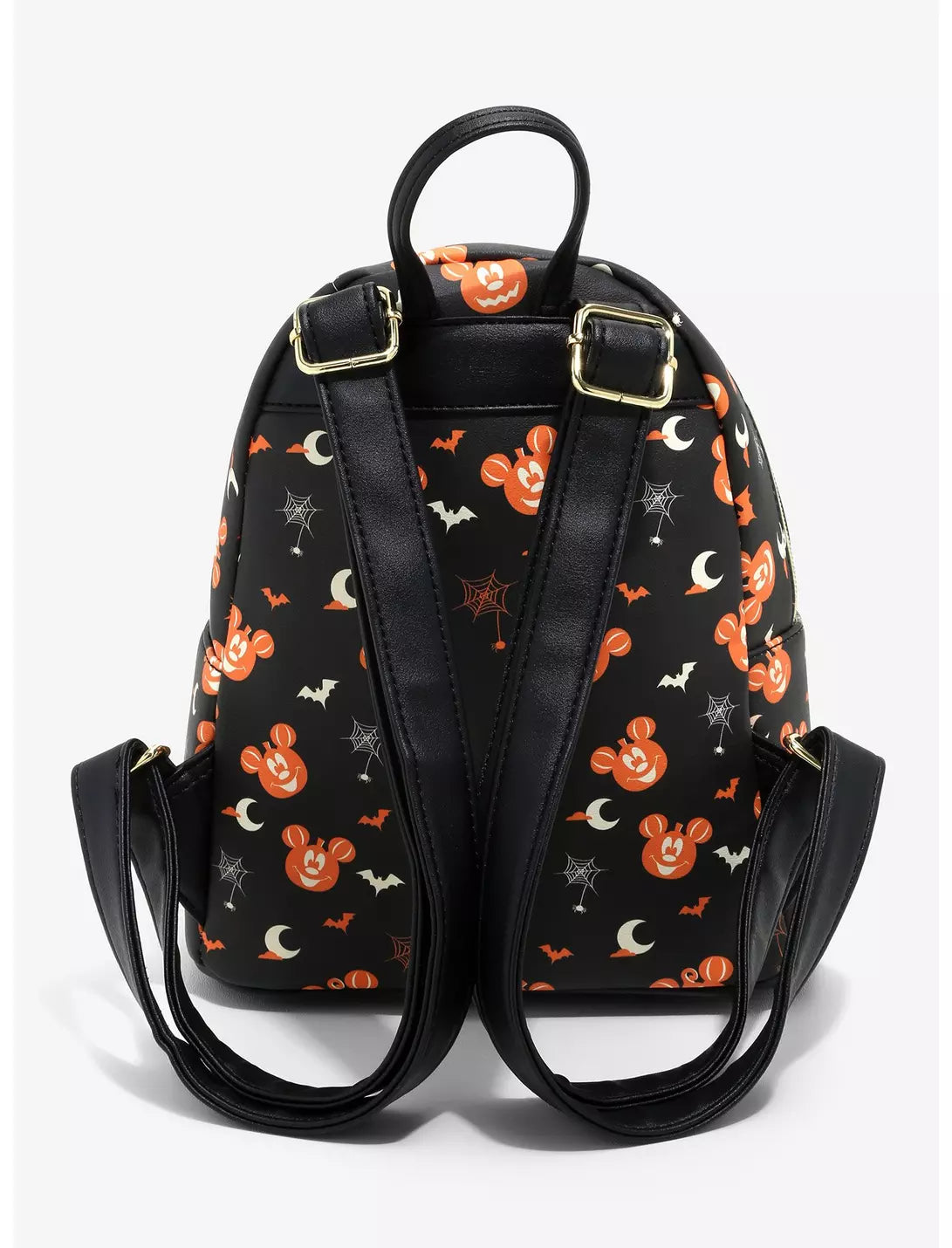 No tricks, all treats! It's time to get spooky. This mini backpack features an all-over print of Mickey Mouse pumpkins, bats, and spiderwebs. Adjustable straps, front zipper pocket, and interior drop pocket.