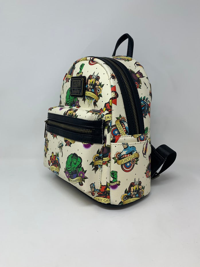 This Avengers flash tattoo AOP design Loungefly bag is perfect for any Marvel or Avengers fan! Perfect for collections or every day use.