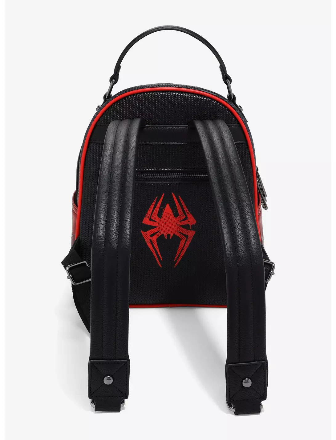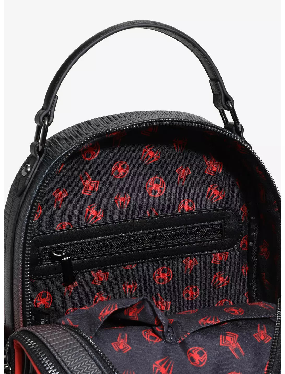If your Spidey senses are tingling, it's because this backpack is calling! This Spider-Man bag features his signature spider applique on the front pocket, resting atop a clear window with a removable pin display panel. Debossed details show off webbing and ombré side pockets, and don't forget the removable enamel pin!