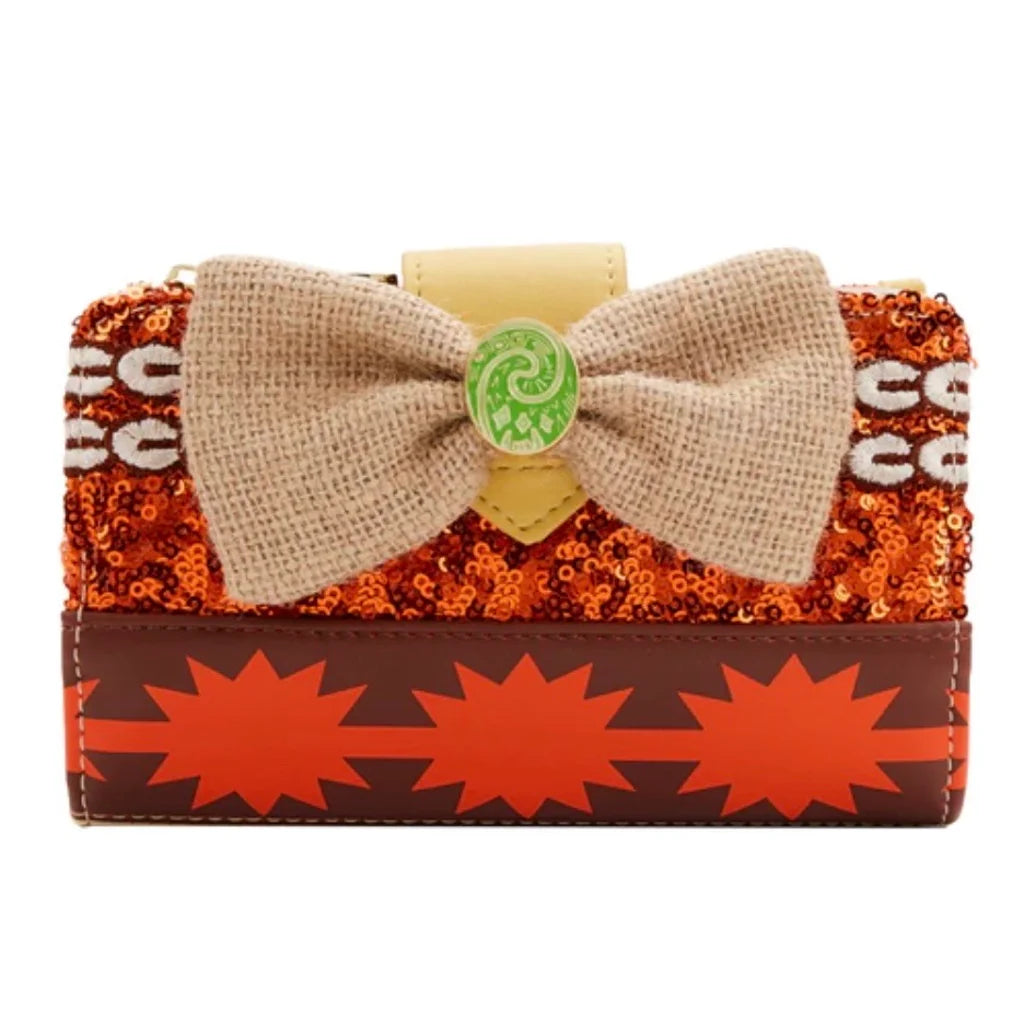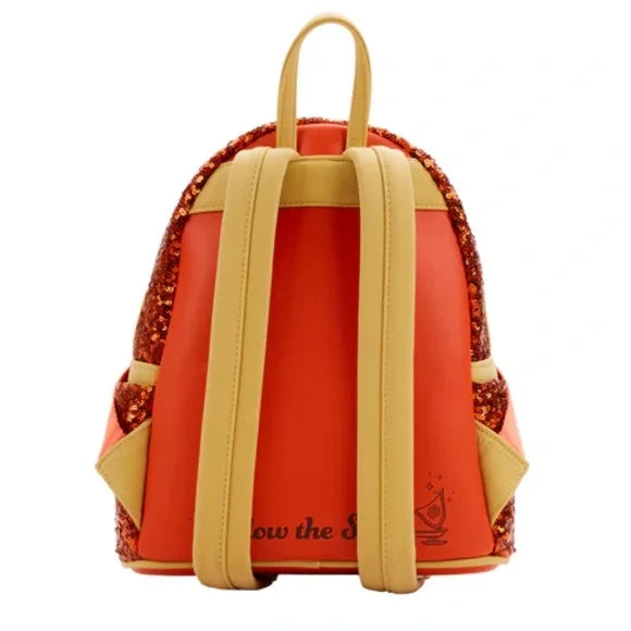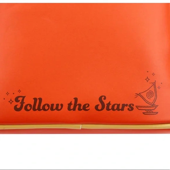 The crowing gem of this dazzling backpack is a 3D bow with a glow-in-the dark charm of the heart of Te Fiti. Sequined details in red & various shades of sandy brown, bring Moana & her story to life. Applique shells, with embroidered details & flowers. On the back, the words “Follow the stars” appear as a reminder to navigate great journeys.