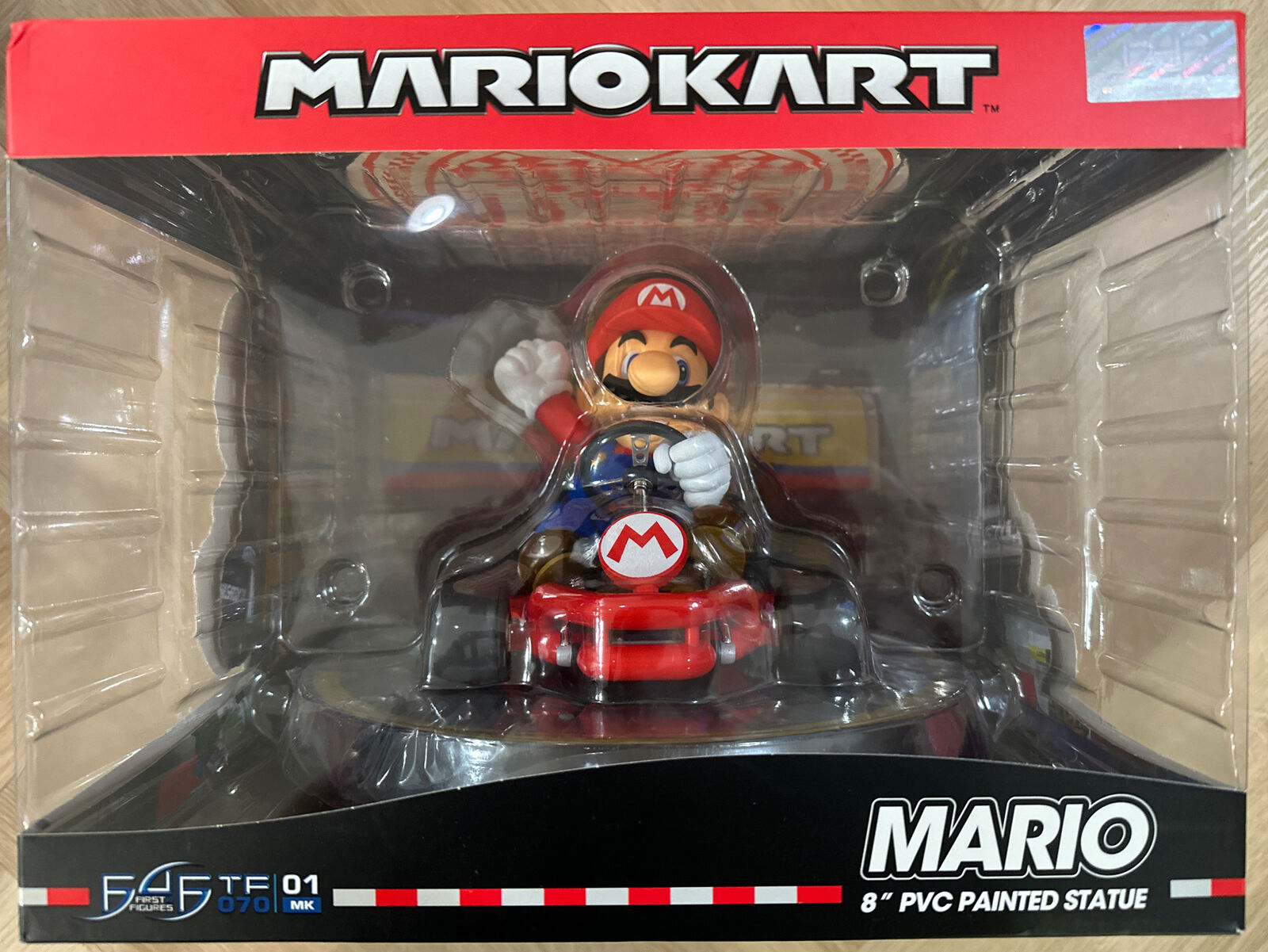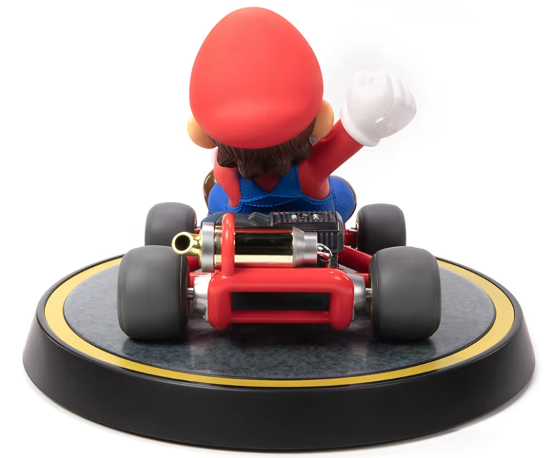 Everything you know and love about Mario is brought to life in this incredible statue. Realistic touches add depth and nuance to the smallest details – from fabric and stitching on his bright red cap to the smoke coming off of the spinning wheels of his go-kart. The go-kart itself is modeled after the classic Pipe Frame design, with lifelike parts and details.