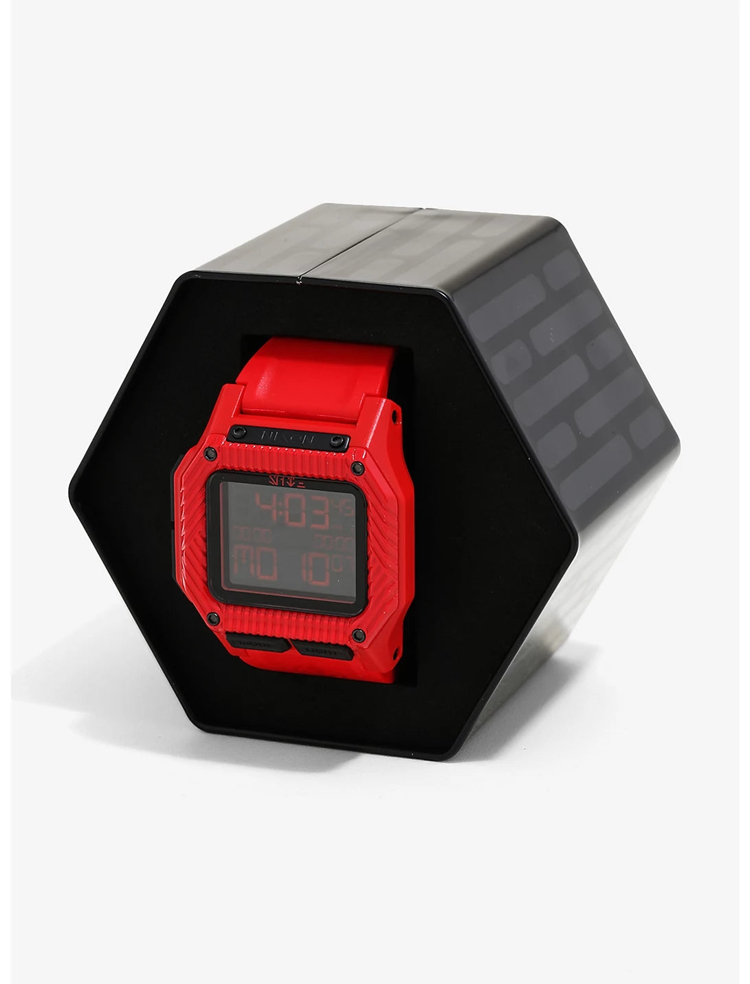 Keep a strict regimen with the Regulus Sith Trooper watch from Nixon, inspired by Star Wars: The Rise of Skywalker! Drawing upon the dark side of the Force with its Aurabesh Sith logo and Sith Trooper logo, this special edition Regulus is a high-performance watch created in collaboration with agents from the Special Operations corps of the United States. Manufactured to withstand the most extreme conditions with shock-absorbent materials, the Regulus is always ready for action.