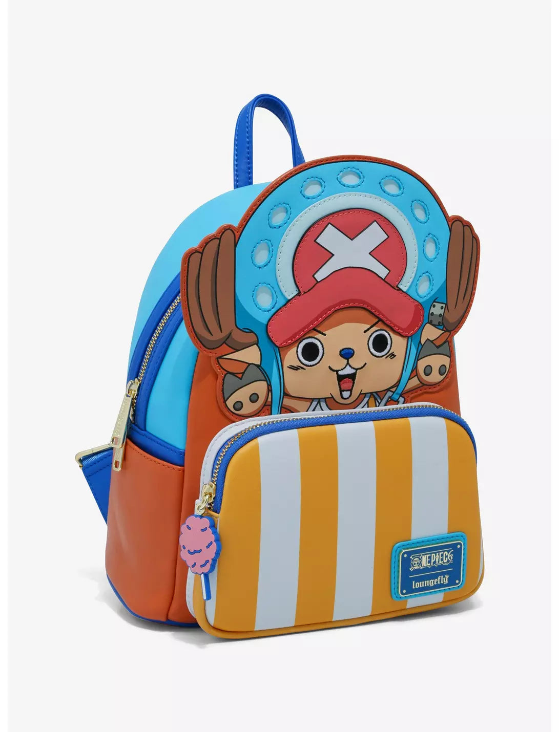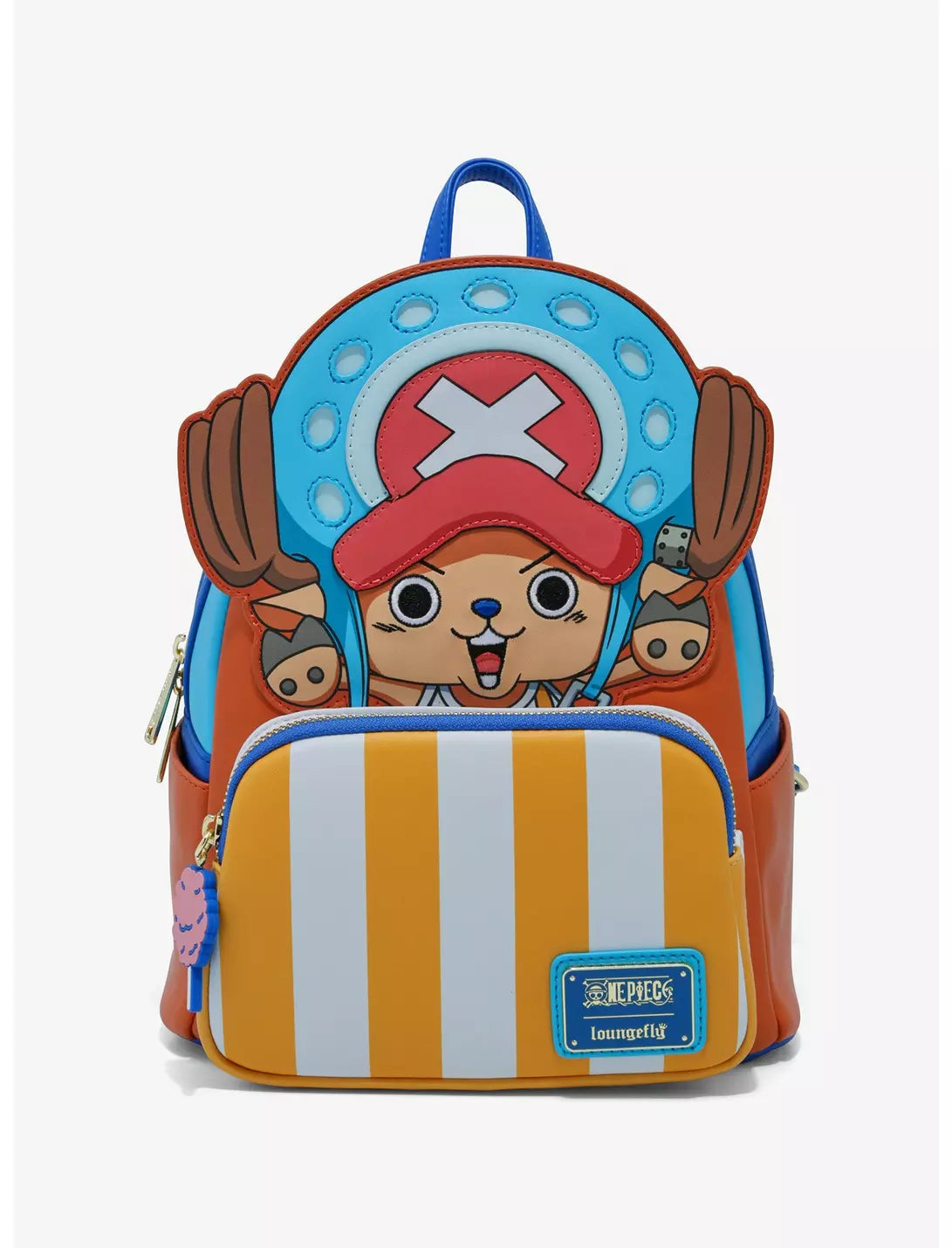 Don't set sail without this One Piece mini backpack! This bag features a figural applique of Chopper, striking a fierce pose above the yellow striped front pocket. With a cotton candy zipper pull, it's a playful addition to your closet.