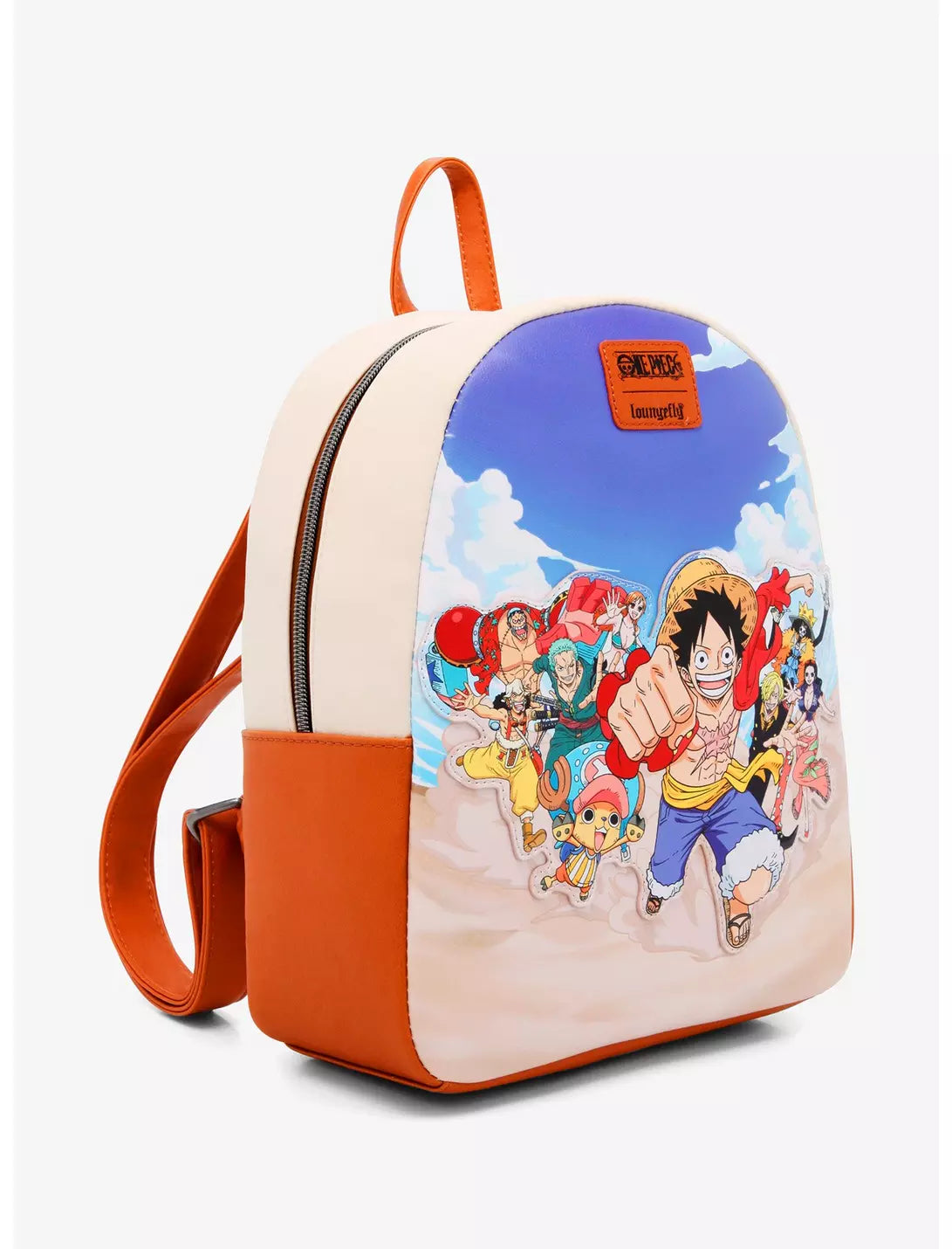 Getting ready to journey into the New World? Pack your essentials into this bag before boarding the Thousand Sunny! This One Piece mini backpack features a large print of the Straw Hat Pirates on the front. Comes with interior drop pocket and adjustable straps.