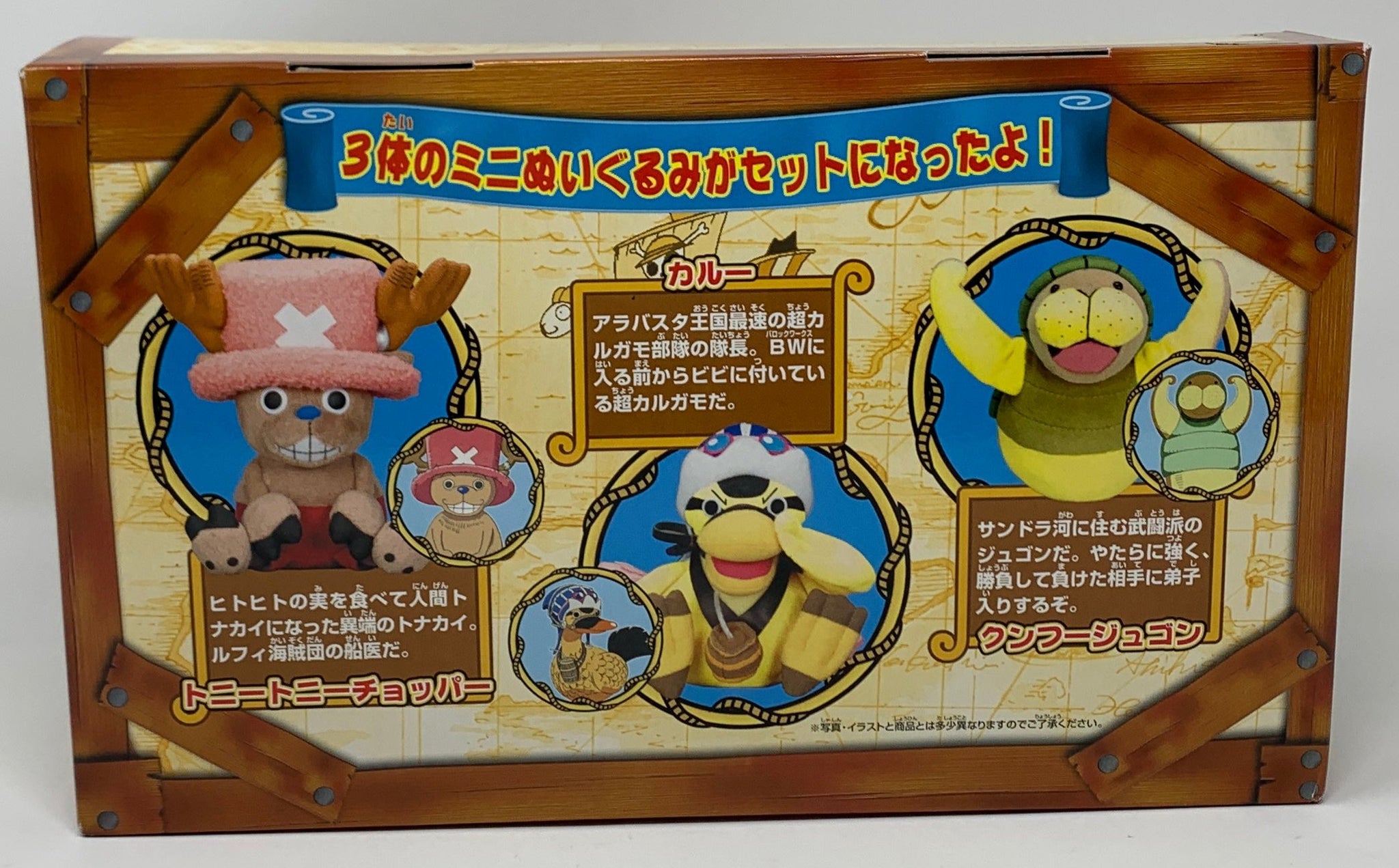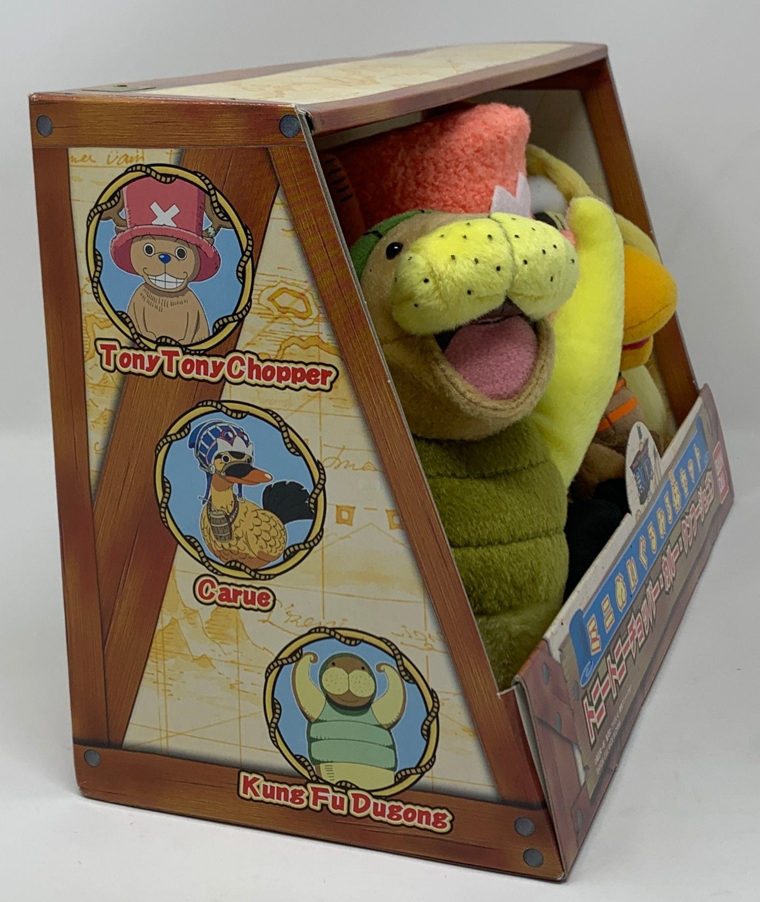 This set, released by Bandai in 2002, reimagines Tony Tony Chopper, Karoo, and Kung Fu Dugong in adorable and cuddly plush forms!