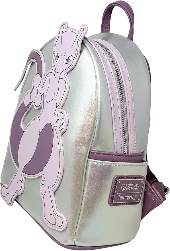 Show off your love for the legendary Mewtwo with this Mewtwo Cosplay Mini Backpack! It features this iconic Pokemon as a die-cut appliqué on a metallic background on the front and Mewtwo's Pokedex number, 150, on the back. It also features silver hardware with a psychic energy zipper charm, adjustable shoulder straps, and an interior all over print of Mewtwo.