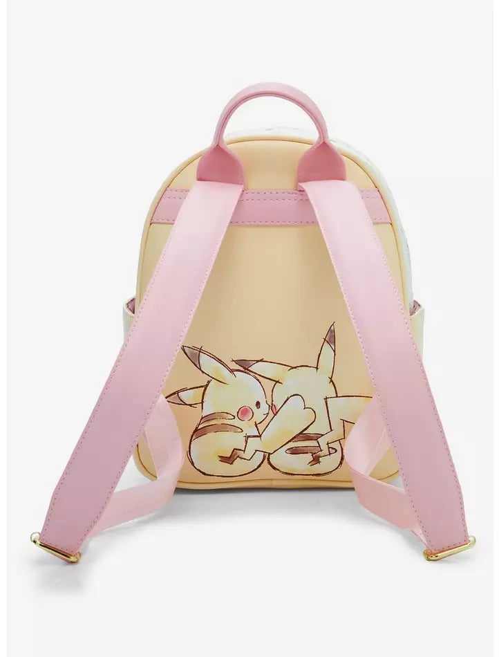 Catching 'em all has never been so stylish! This pastel Pokémon backpack features an allover print of Pikachu amid Poké Balls and berries, while the magnetic front pocket includes a lightweight gold chain. Don't miss the metal Pikachu plaque!