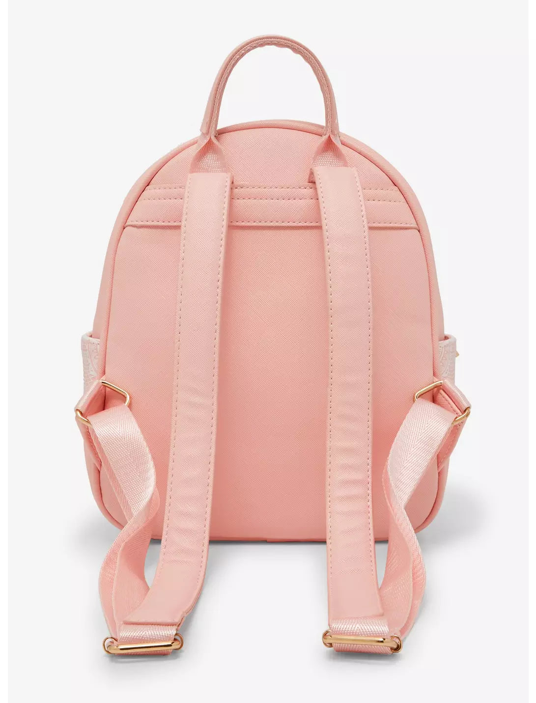 Explore the outdoors in Sanrio fashion with this Hello Kitty and Friends mini backpack! Featuring a group portrait of Hello Kitty, My Melody, Kuromi, Pochacco, Little Twin Stars, and Marroncream among flowers on the front pocket. This bag is perfect for picnics, trips to the garden, and beyond.