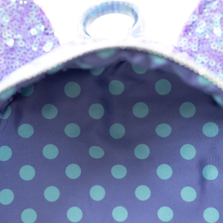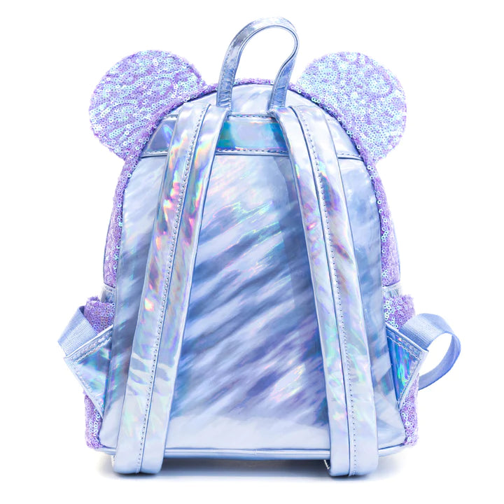 Bring some sparkle to your life with this stunning purple sequin Minnie Mouse Loungefly mini backpack! Perfect for display or for every day use!