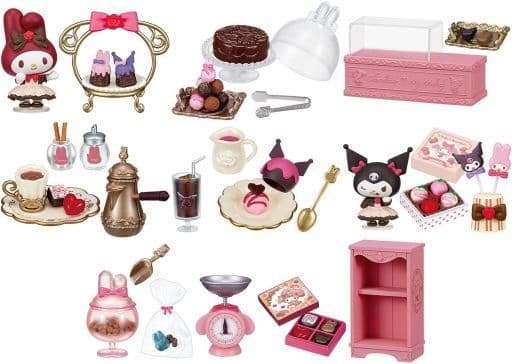 Each blind box comes with one of 8 different parts to build your own miniature chocolate shop with My Melody and Kuromi!