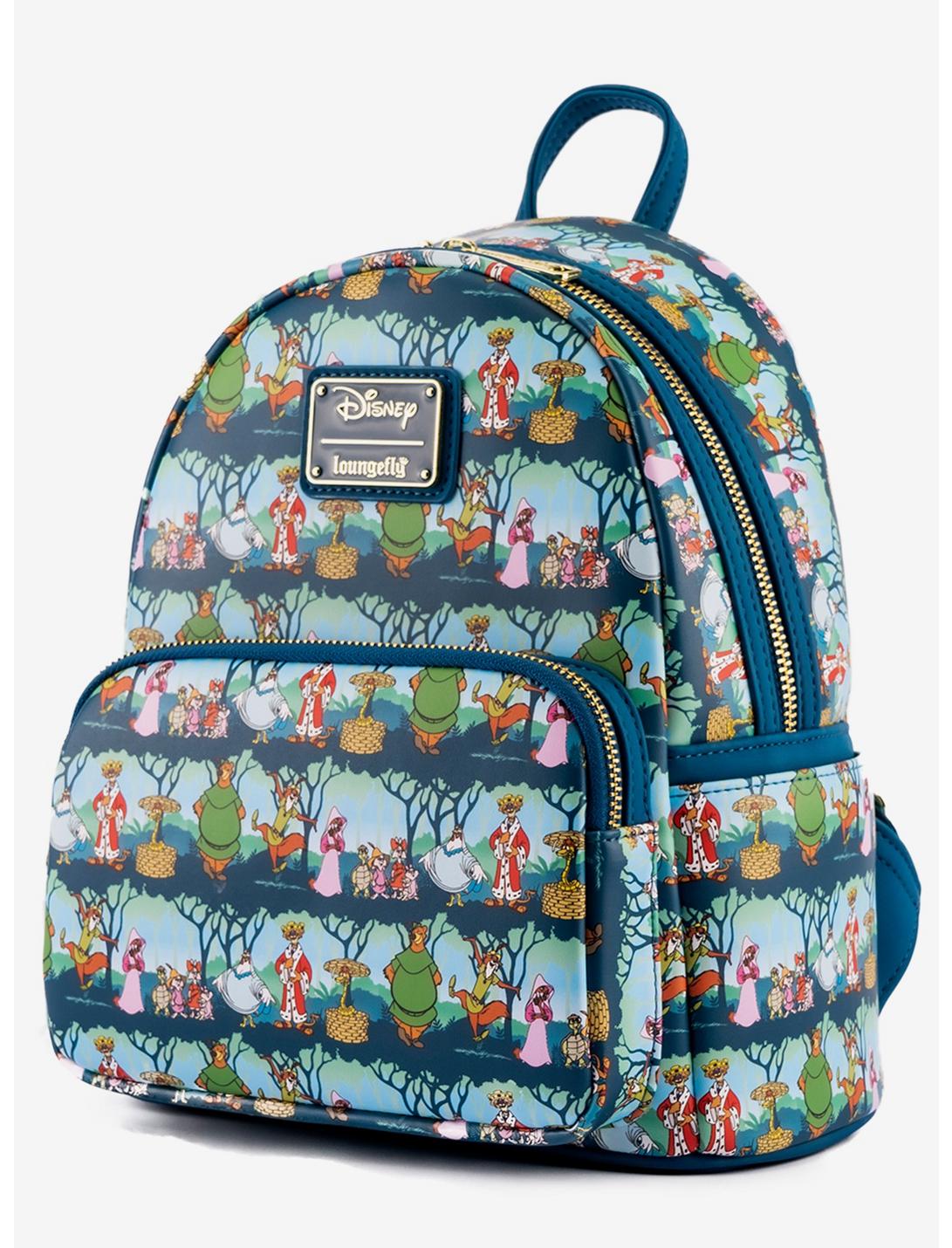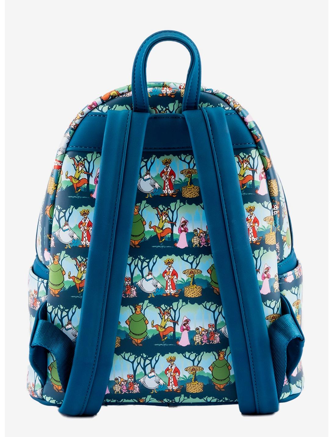 Keep your chin up -- a Robin Hood backpack is here! Features an allover print of beloved Disney characters like Robin Hood, Maid Marian, Lady Cluck, Little John and more -- with complementary printed lining. Adjustable straps, interior drop pocket, front zipper pocket and gold tone hardware.