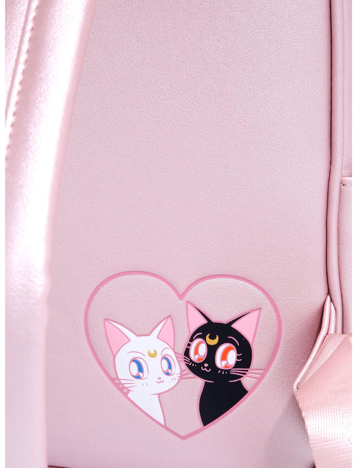 With the Spiral Heart Moon Rod as the top handle, you’ll feel like a Sailor Scout every time you pick up this blushing pink mini backpack! With Luna and Artemis stamped on the back, the courageous cat duo will be sure to back you up like they do for Usagi. Inspired by the iconic anime, Sailor Moon, the interior lining features the Sailor Scouts' symbols. This backpack also features a gold-toned zippered front pocket and enamel brand badges, open pockets on each side, and an interior zippered pocket.